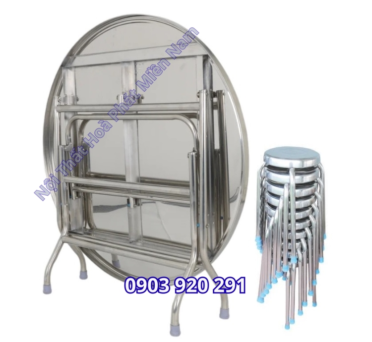 Bộ bàn inox tròn ghế xếp cao cấp